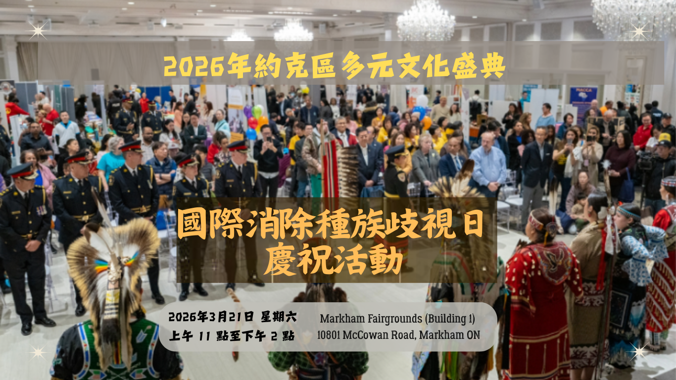 2026年3月21日(星期六),約克區警察局(York Regional Police)將在 Markham Fairgrounds (Building 1) 隆重舉行 「國際消除種族歧視日」(International Day for the Elimination of Racial Discrimination)大型慶祝盛典 。