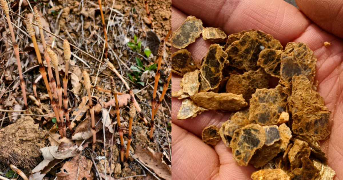 孫先生還發現,這裡的岩石夾雜著雲母片,而且周圍5公里範圍內,幾乎長滿了問荊草。