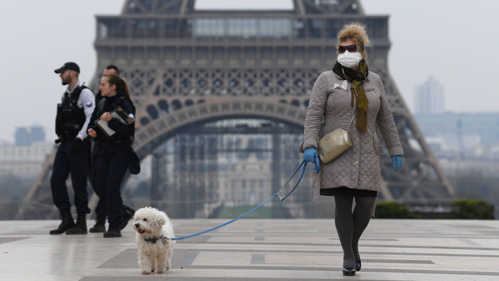 受中共肺炎疫情影響,法國著名的埃菲爾鐵塔前空空蕩蕩。(Pascal Le Segretain/Getty Images )