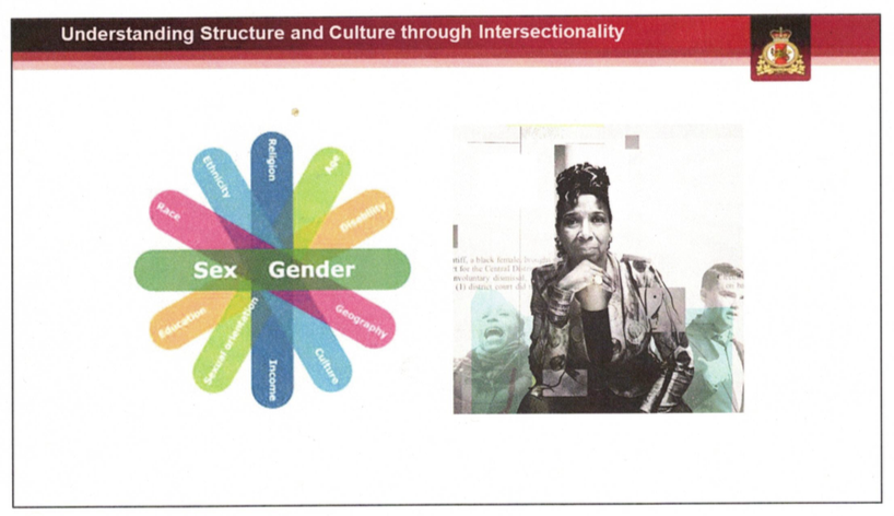 Screenshot of a slide from the Canadian Armed Forces briefing “Getting to Where We Need to Be” featuring critical race theory proponent Kimberlé Crenshaw.