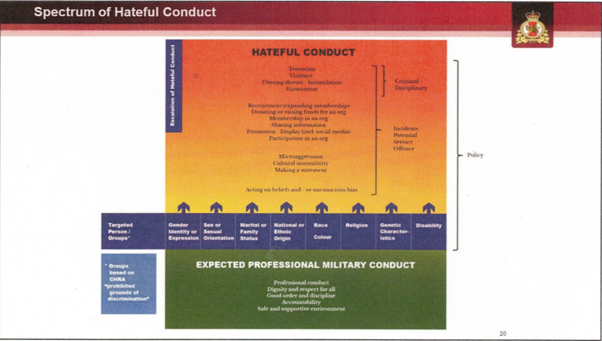 It links the “unprofessional conduct” in the forces to the “historical struggles” to “end discrimination and to adequately represent and support all of its people, but particularly women, Black, Indigenous, people of colour (BIPOC) and Lesbian, Gay, Bisexual, Transgender, Queer, Two Spirit, Intersex, and Asexual (LGBTQ2SIA+) people.”
