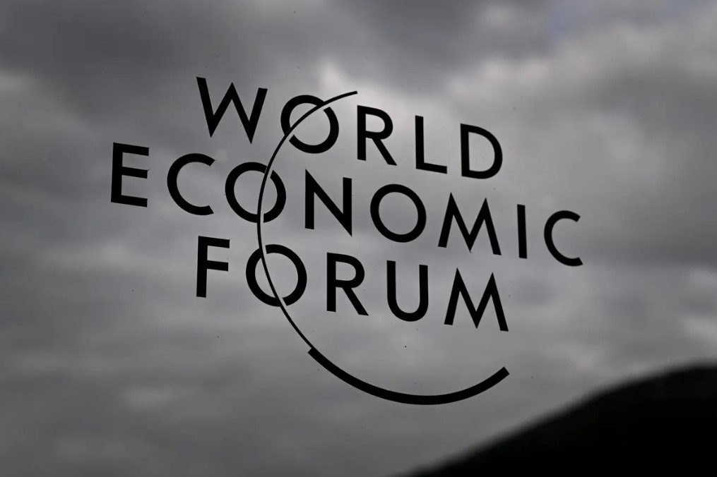 A World Economic Forum (WEF) sign is seen at the Davos Congress Centre during the organization’s annual meeting in Davos, Switzerland, on May 23, 2022. (Fabrice Coffrini/AFP via Getty Images)