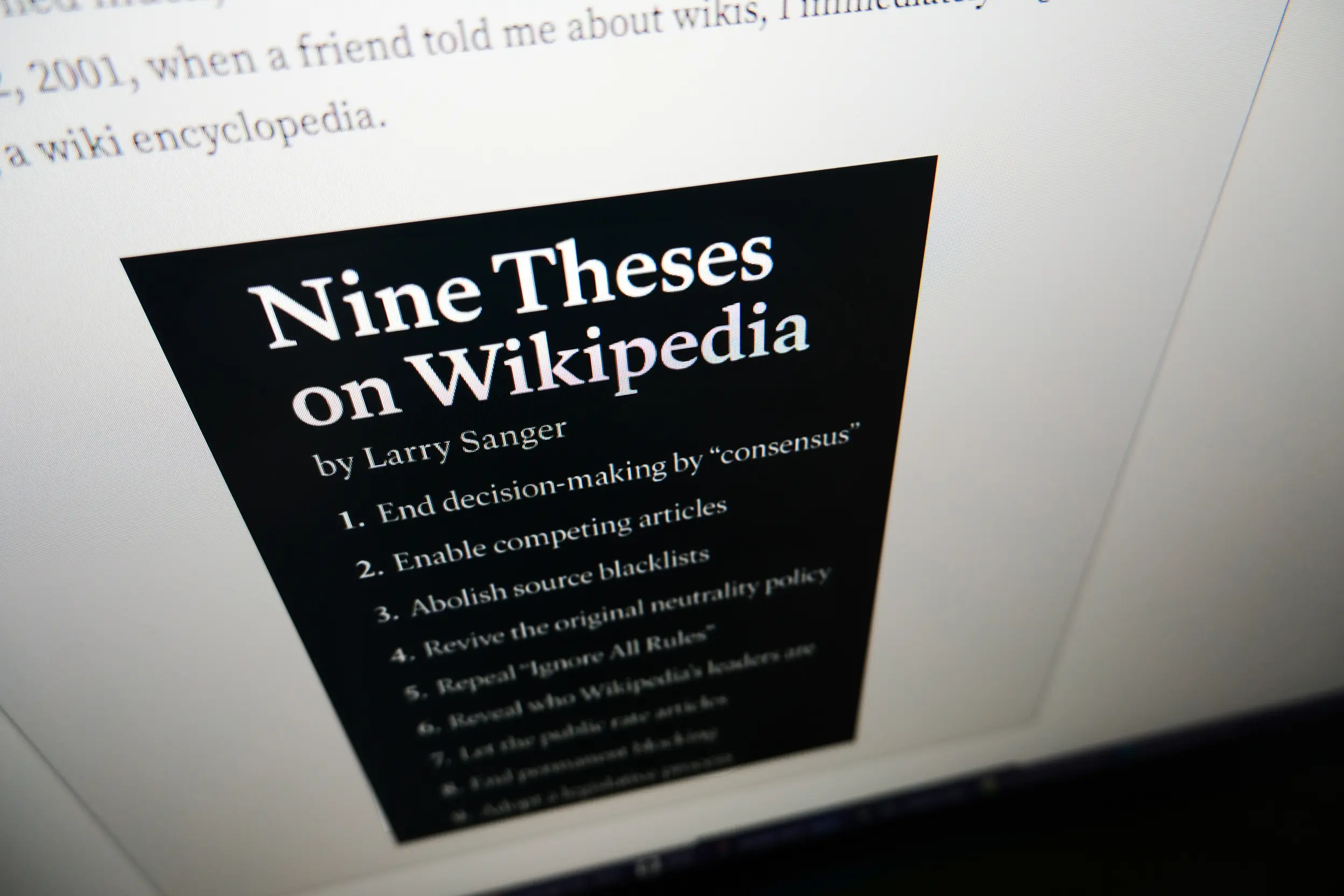Sanger also calls on the site to repeal the “ignore all rules” policy, which he created in Wikipedia’s early days. The rule was intended to encourage editors who were nervous about amending articles to simply focus on the task at hand.