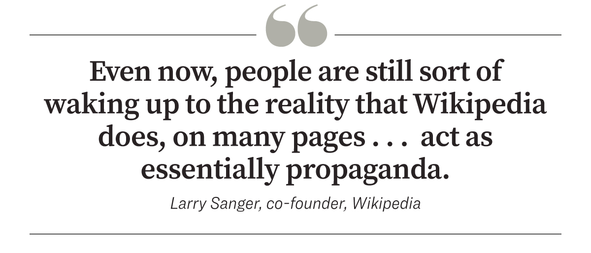 “Even now, people are still sort of waking up to the reality that Wikipedia does, on many pages … act as essentially propaganda,” he said.