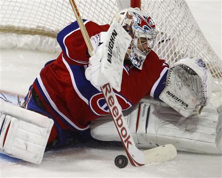 Montreal Canadiens goalie Carey Price makes a save on the Philadelphia Flyers during the first period of NHL hockey action in Montreal November 16, 2010. (REUTERS/Shaun Best)