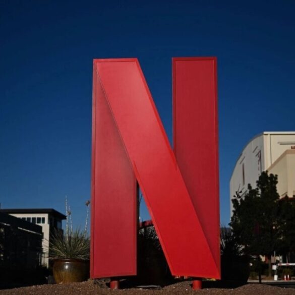 The Netflix logo is displayed at the entrance to Netflix Albuquerque Studios film and television production studio lot in Albuquerque, N.M., on Oct.13, 2023. (Patrick T. Fallon/AFP via Getty Images)