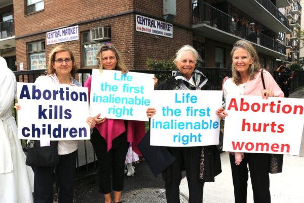 Patricia Coffey (1st R), a participant at a pro-life rally at Holy Family Parish in Toronto, Ont., on Oct. 6, 2024. The rally is part of a nationwide “Life Chain,” which included hundreds of similar events across Canada. Andrew Chen/The Epoch Times