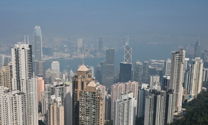 A veil of smog hanging over the Hong Kong skyline on Dec. 29, 2021. (Peter Parks/AFP via Getty Images)