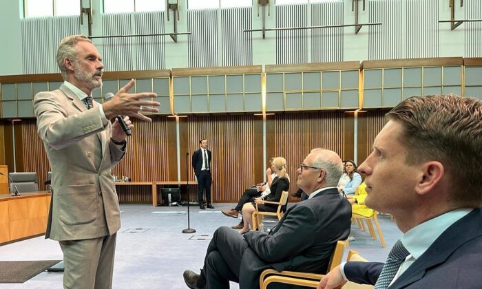 Jordan Peterson gives a speech at Parliament House in Canberra, Australia, on Nov. 24, 2022. (Andrew Hastie/Instagram)