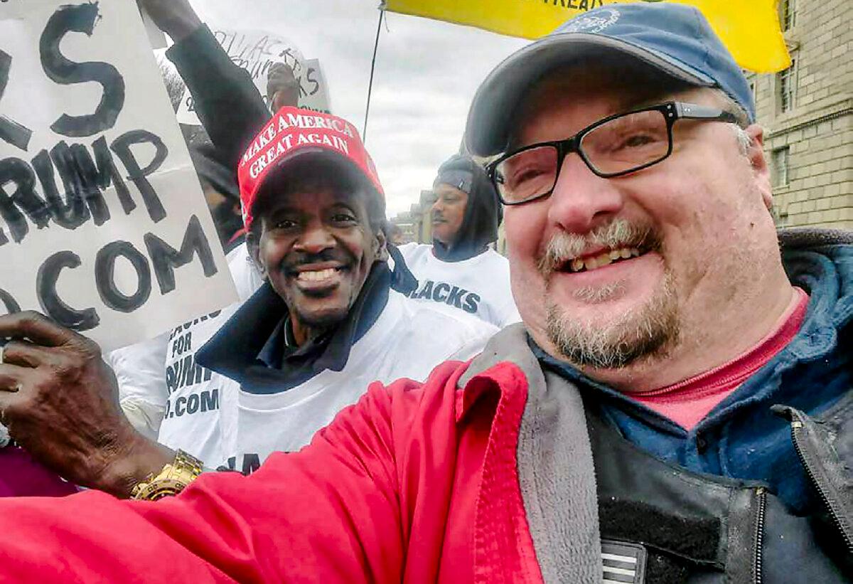 Former Pennsylvania police officer Joseph W. Fischer (right) is accused of scuffling with police inside the U.S. Capitol on Jan. 6, 2021. (U.S. Department of Justice/Screenshot via The Epoch Times)