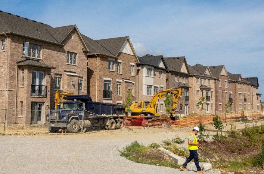A construction crew walks in front of new homes under construction in Brampton, Ontario, July 13, 2022. (REUTERS/Carlos Osorio/File Photo)