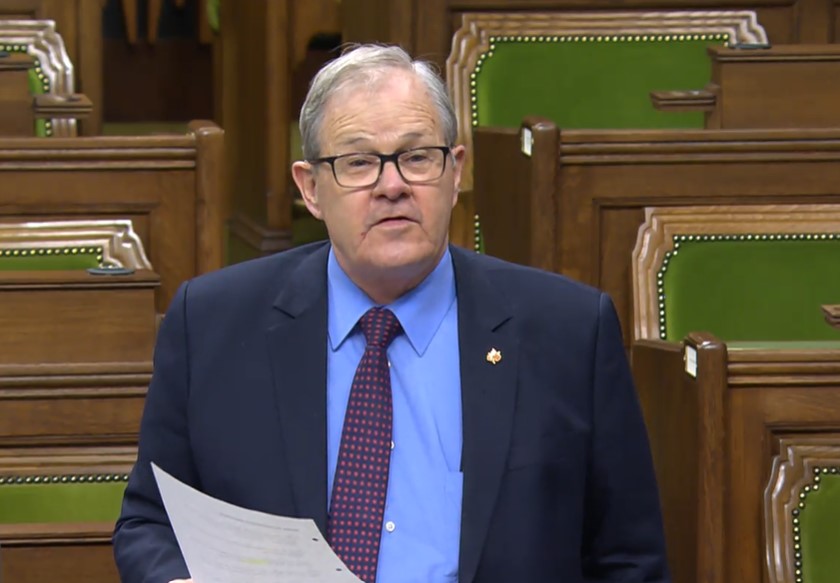 Minister of Veterans Affairs Lawrence MacAuley in the House of Commons on Parliament Hill in Ottawa, March 25, 2022. (Screenshot from ParlVu)