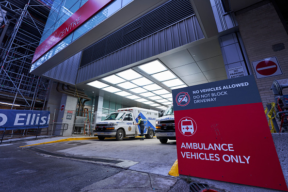 A paramedic returns to their ambulance outside the emergency department at Mount Sinai Hospital in Toronto, Ontario, on January 5, 2022. (Photo by Geoff Robins / AFP via Getty Images)