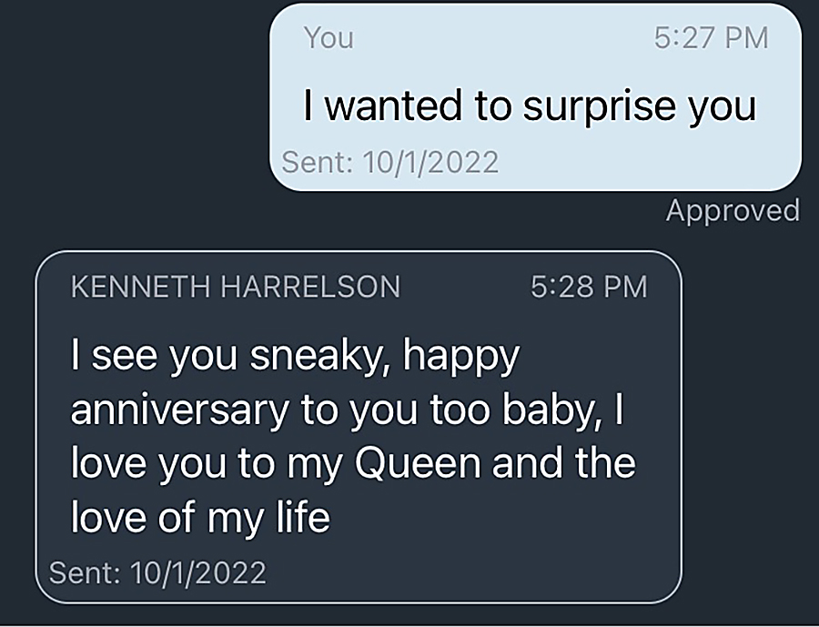 Angel Harrelson wanted to make sure her husband knew how much she loves him.