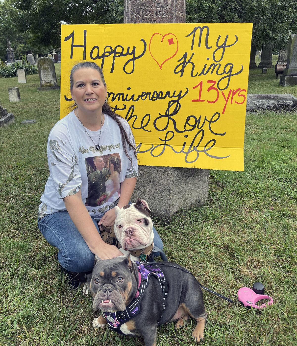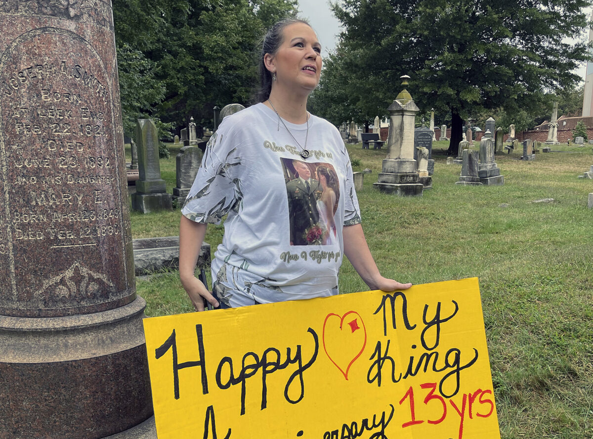 She stood at the edge of the Congressional Cemetery in Washington on the evening of Oct. 1, holding a handmade sign. The message was simple and heartfelt: “Happy Anniversary to the Love of My Life, My King. 13 Years.”